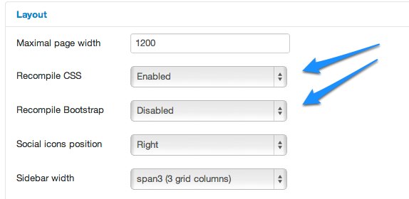 The LESS parser can be enabled separately for Bootstrap and for the template LESS files in the "Layouts" tab: